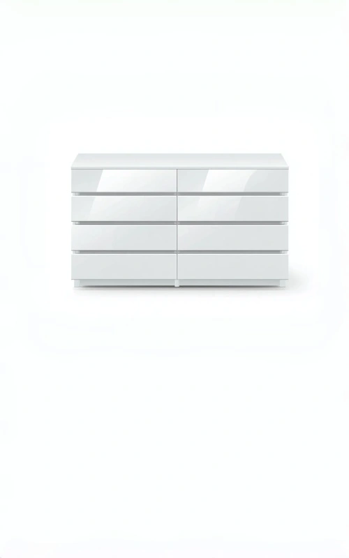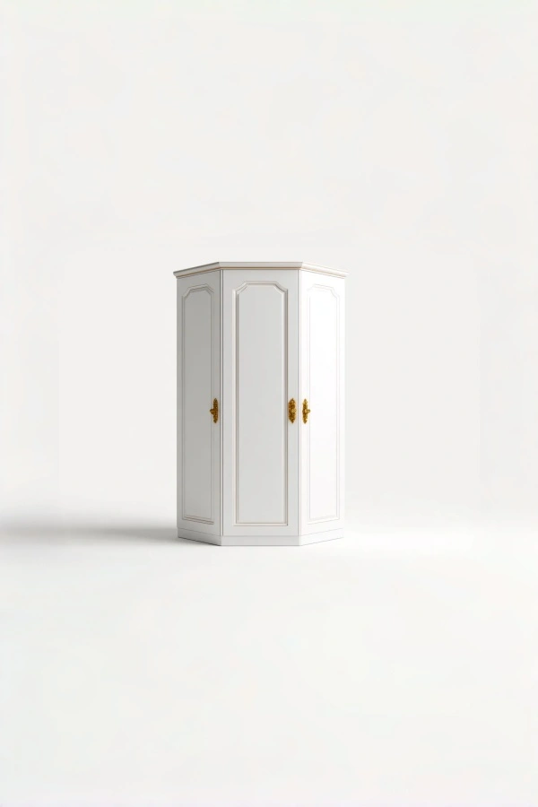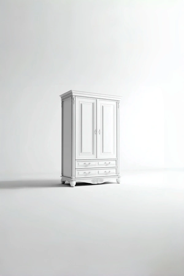 La struttura è realizzata in legno lavorato con superfici lisce e resistenti. La finitura in colore bianco valorizza l'aspetto pulito dell'armadio e contribuisce a creare un'atmosfera chiara e accogliente. Le maniglie coordinate completano l'insieme con discrezione.